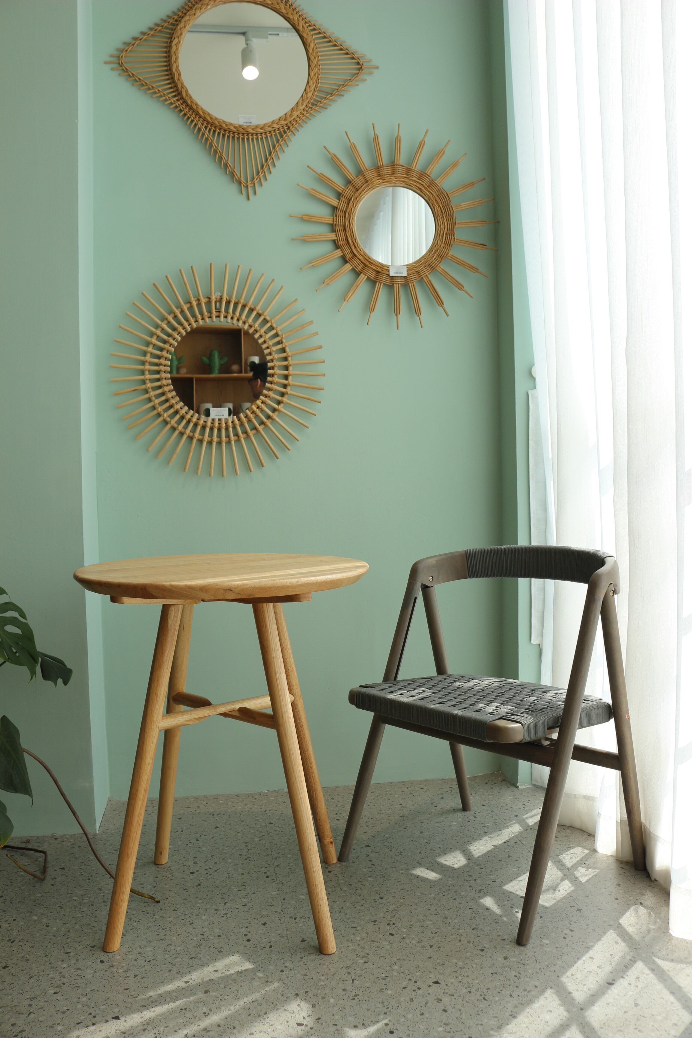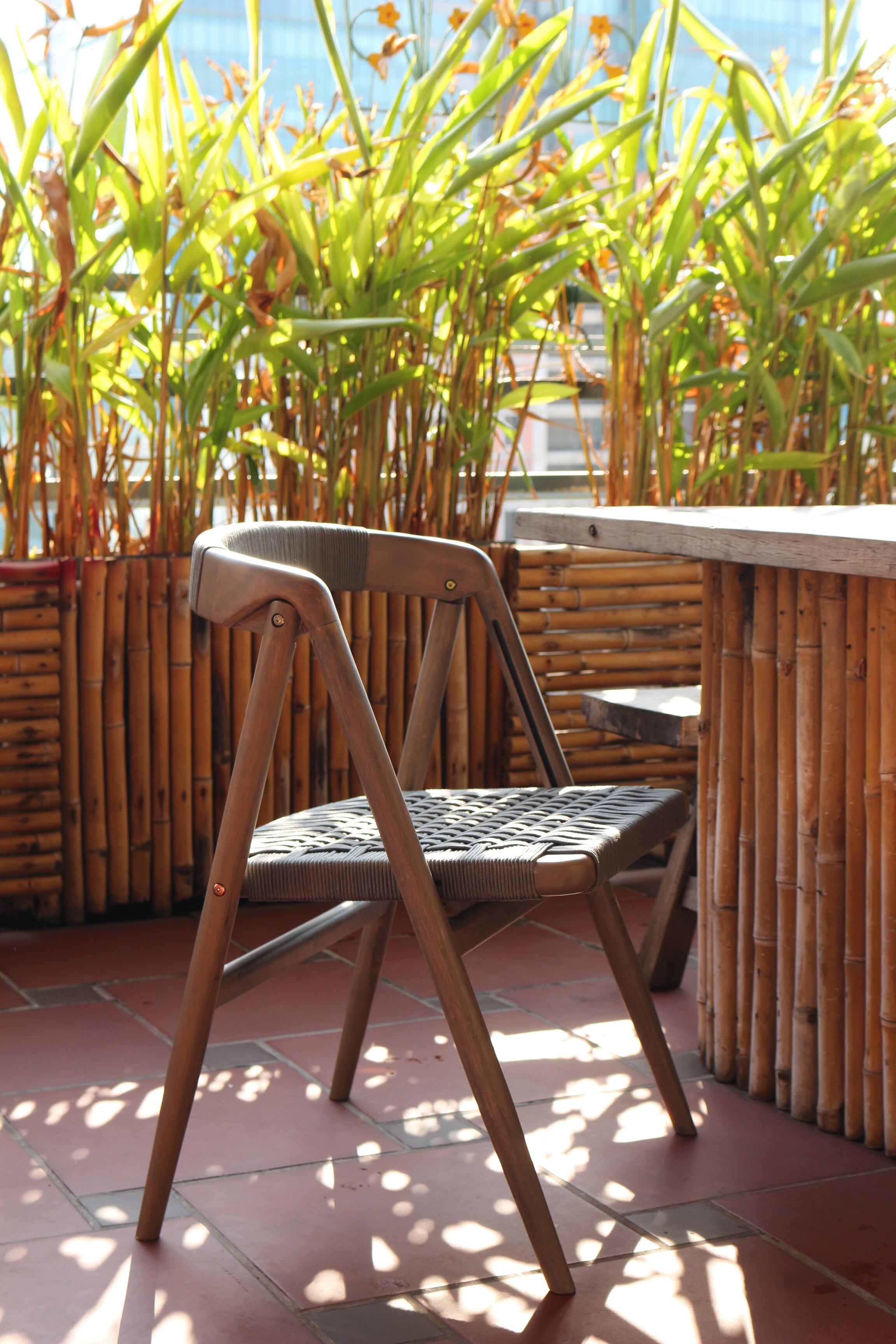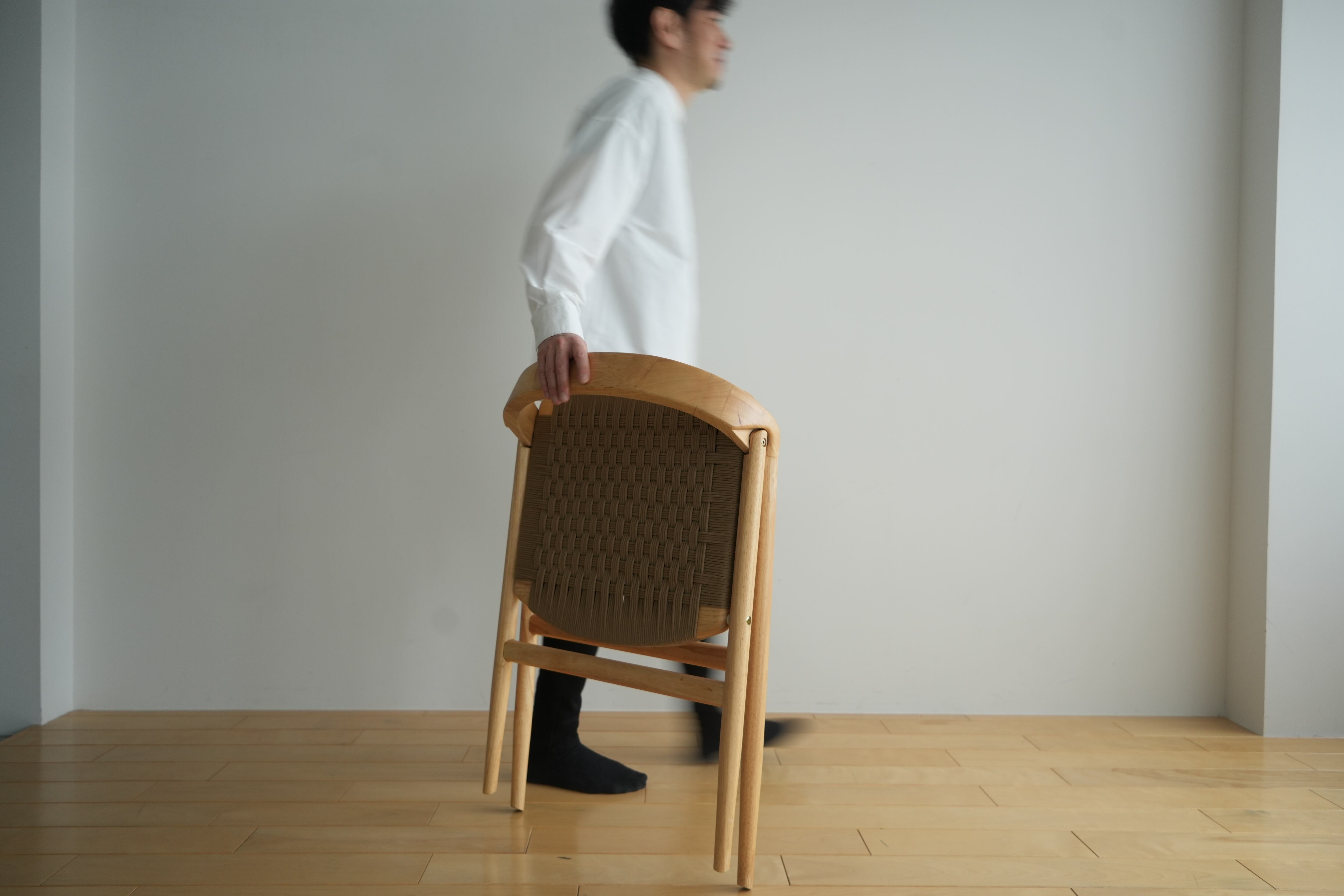 座面にはポリエステルロープを手作業で丁寧に編み込み、通気性とほどよい弾力を両立。季節を問わず快適にお使いいただけます。